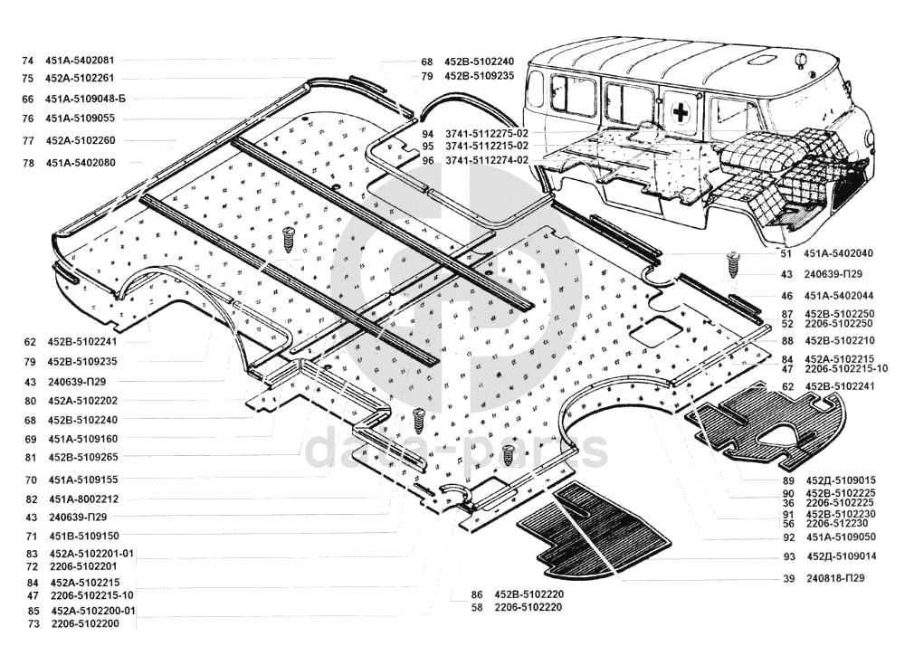 Коврики пола, шумоизоляция пола УАЗ 3741