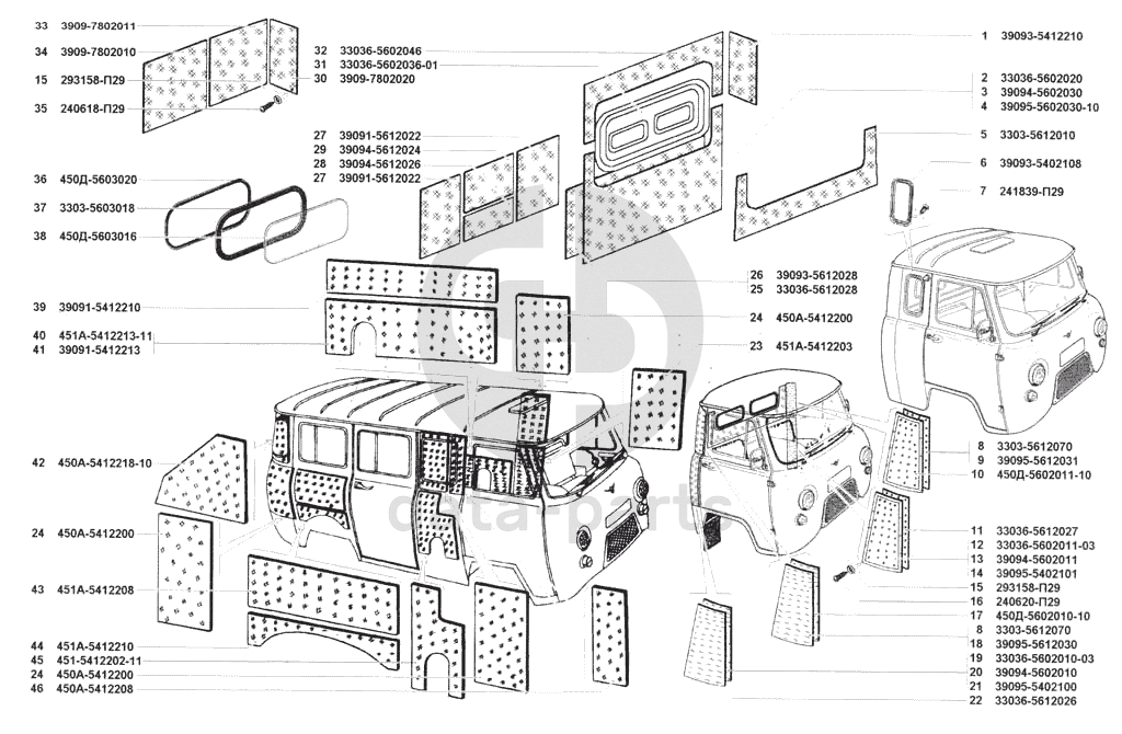 Обивка задка, окно задка, шумоизоляция задка, термошумоизоляция боковины УАЗ 3741