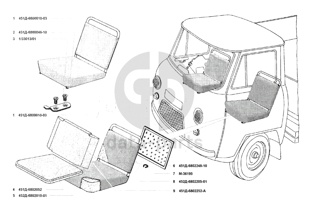 Сиденье и обивка сиденья водителя УАЗ 3741
