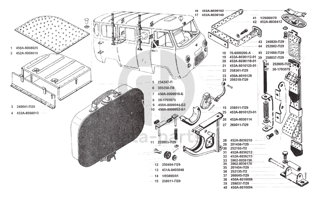 Ящик для предметов ухода, бачок для воды крепление специального оборудования УАЗ 3741
