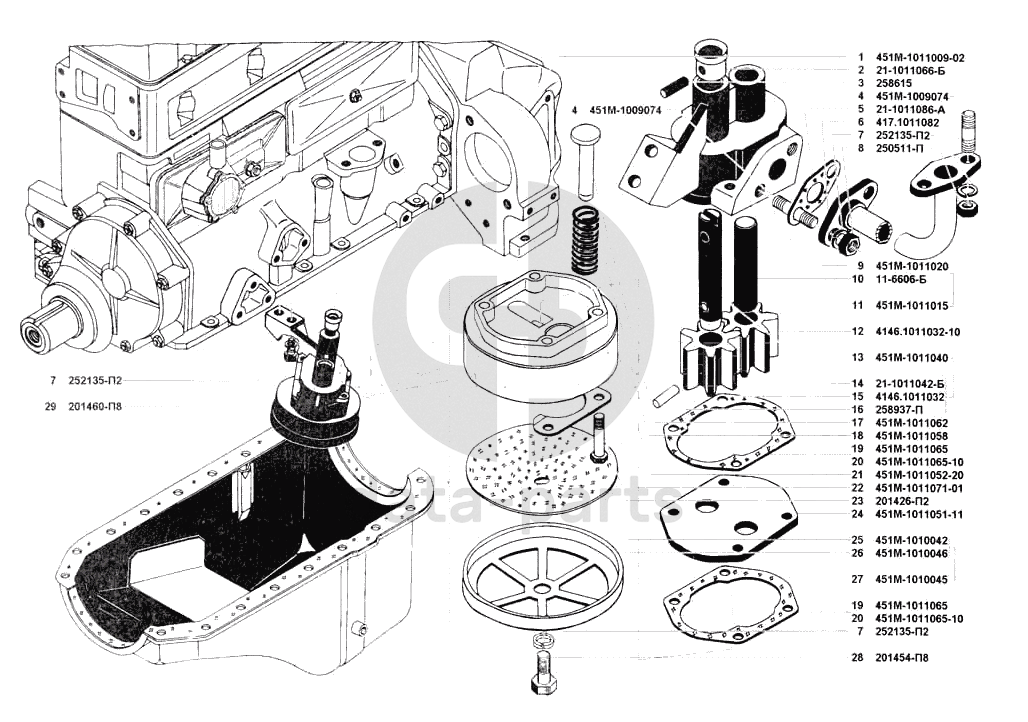 Маслоприемник и масляный насос УАЗ 3741