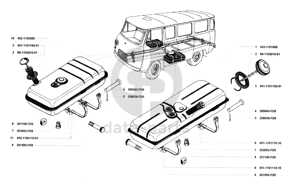 Бак топливный, бак топливный дополнительный, пробка топливного бака УАЗ 3741