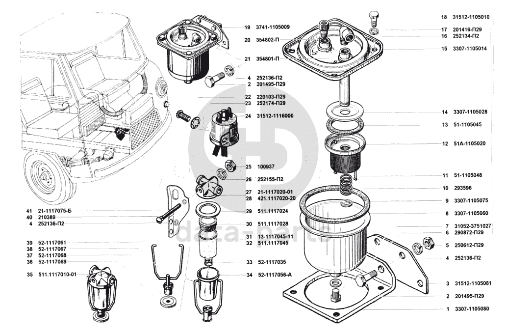 Фильтр грубой очистки топлива, клапан топливный электромагнитный, фильтр тонкой очистки топлива УАЗ 3741