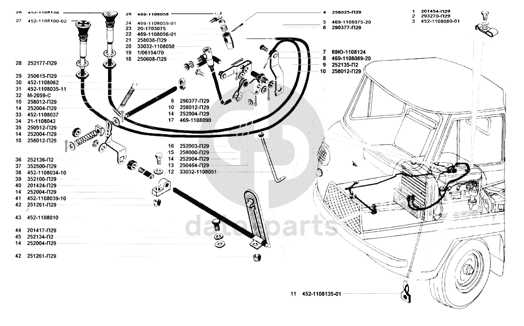 Привод управления дроссельной и воздушной заслонками УАЗ 3741