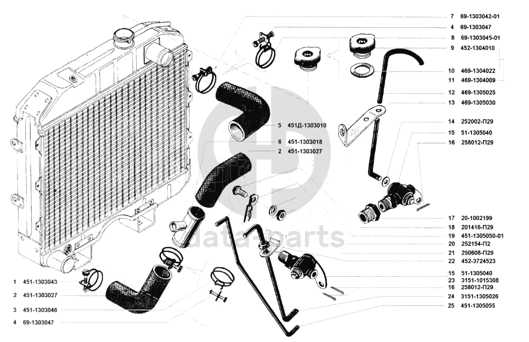 Трубопроводы и шланги, пробка радиатора и краник сливной УАЗ 3741