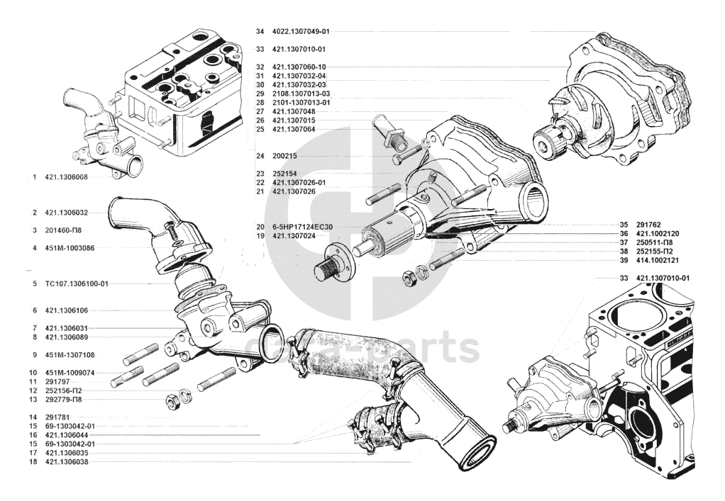 Термостат и насос системы охлаждения УАЗ 3741