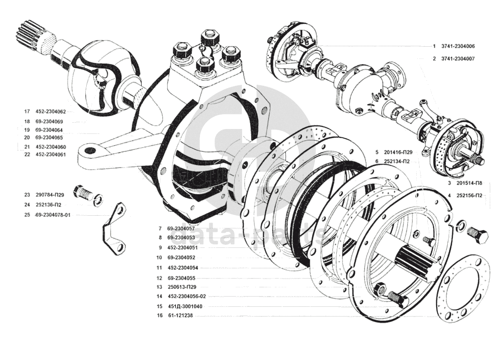 Кулак поворотный переднего моста с тормозом правый в сборе