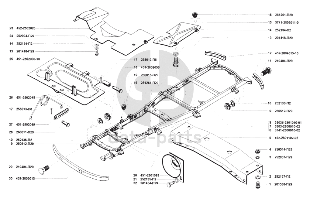 Рама в сборе, брызговики, бампер передний, бампер задний УАЗ 3741