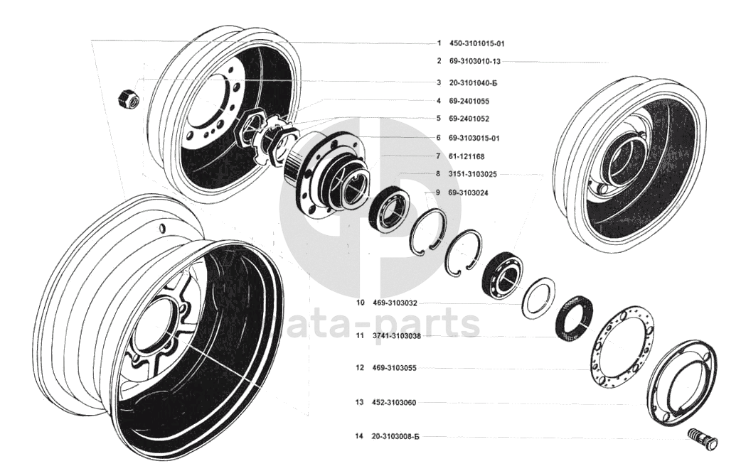 Колеса, ступицы передних и задних колес УАЗ 3741