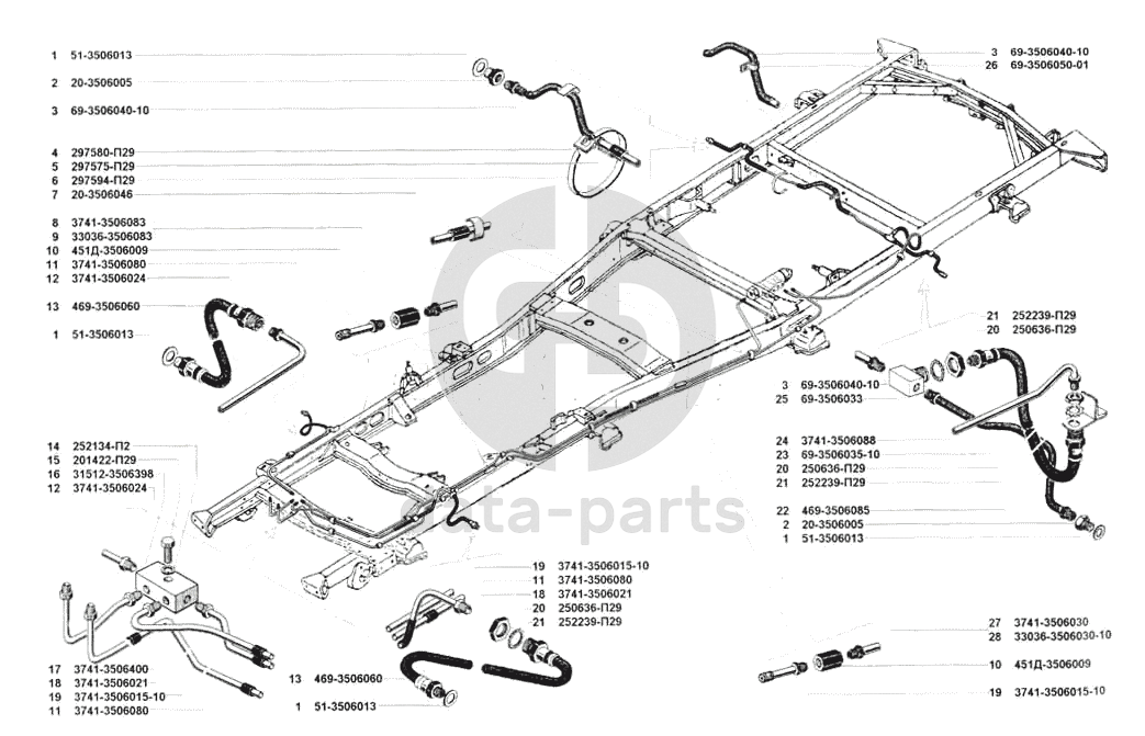 Трубопроводы гидравлических тормозов УАЗ 3741