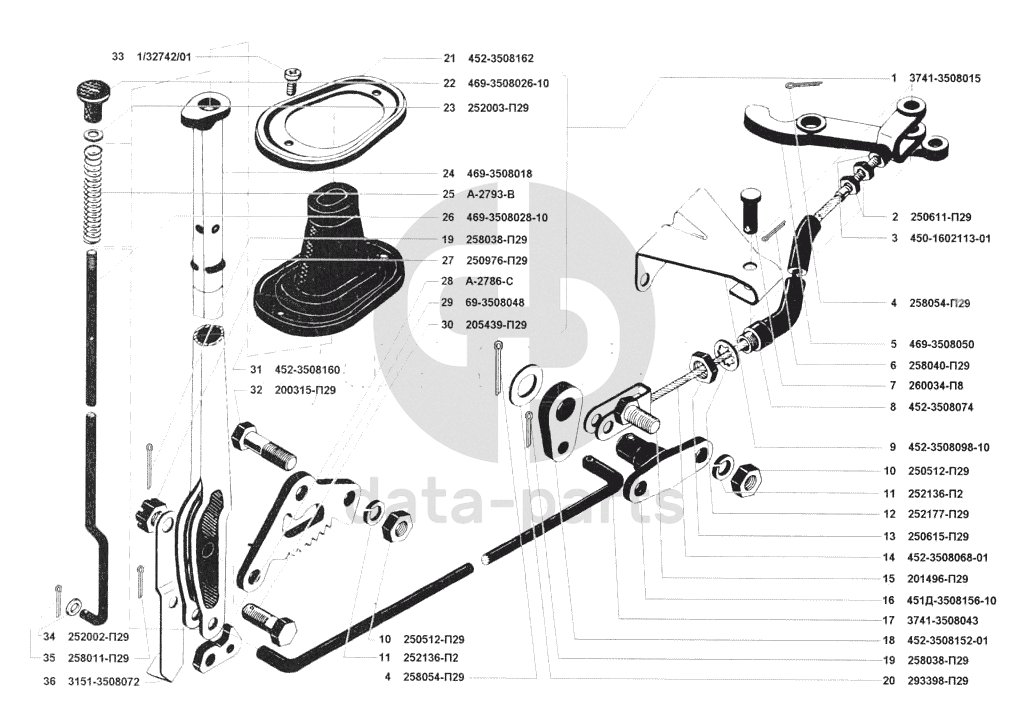 Привод механизма управления стояночным тормозом УАЗ 3741