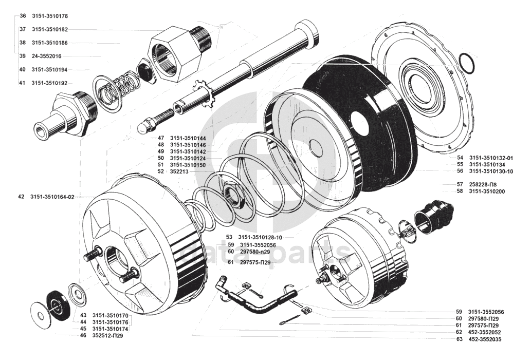 Усилитель вакуумный тормоза, трубопровод вакуумного усилителя УАЗ 3741