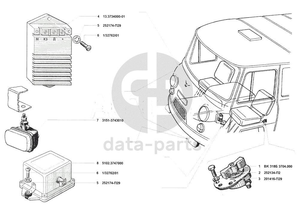 Коммутатор транзисторный , выключатель "массы", фара противотуманная, вибратор аварийный УАЗ 3741
