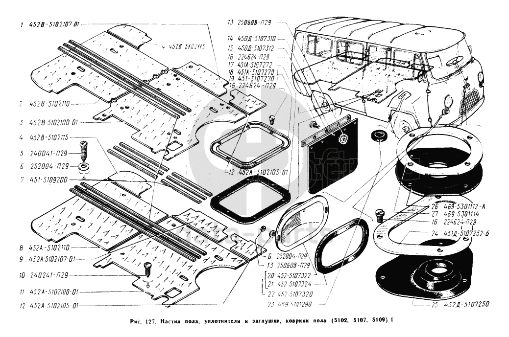 Настил пола, уплотнители и заглушки УАЗ 3962
