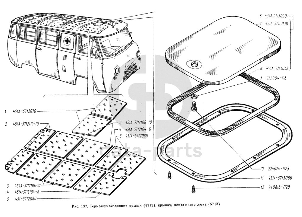 Термошумоизоляция крыши, крышка монтажного люка УАЗ 3962