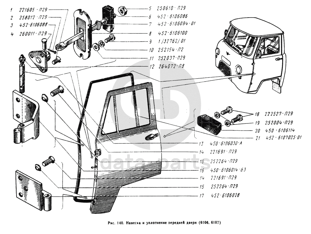 Навеска передней двери, уплотнение передней двери УАЗ 3962