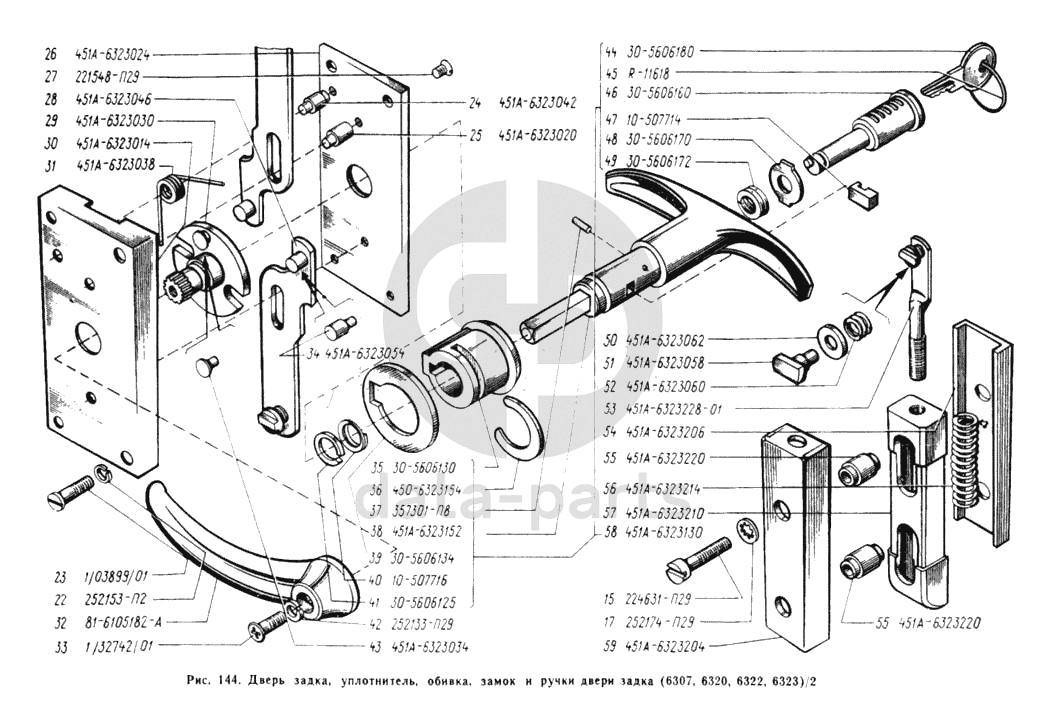 Замок и ручки двери задка УАЗ 3962
