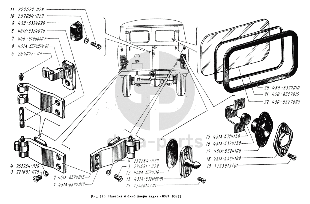 Навеска дверей задка, окно двери задка УАЗ 3962