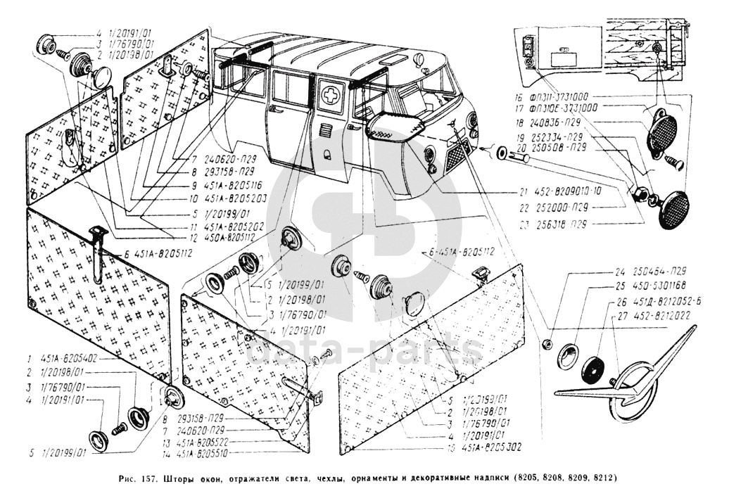 Шторы окон, отражатели свеча, чехлы, орнаменты и декоративные надписи УАЗ 3962