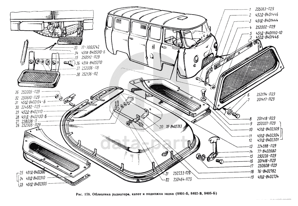 Облицовка радиатора, капот, подножка задка УАЗ 3962