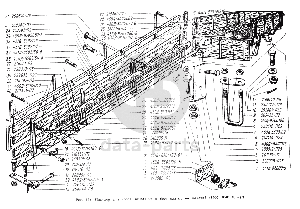 Платформа в сборе, борт платформы боковой УАЗ 3962