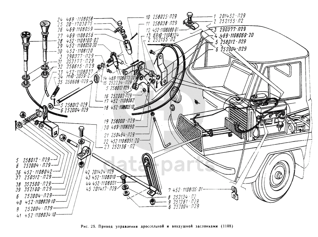 Привод управления дроссельной и воздушной заслонками УАЗ 3962