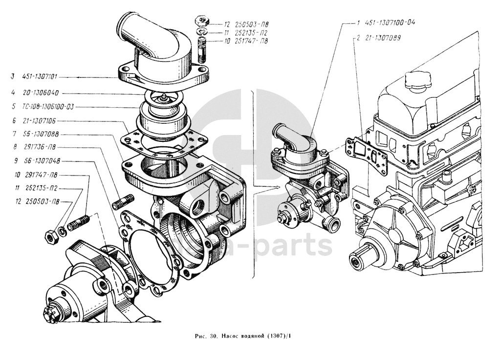 Насос водяной с кронштейном, выпускным патрубком и термостатом УАЗ 3962