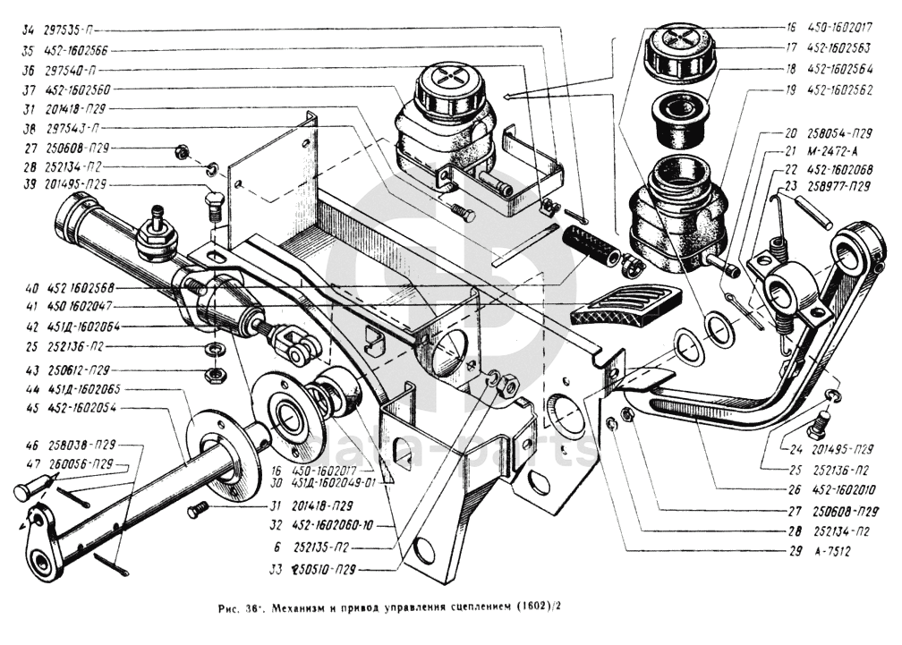 Механизм и привод управления сцеплением УАЗ 3962