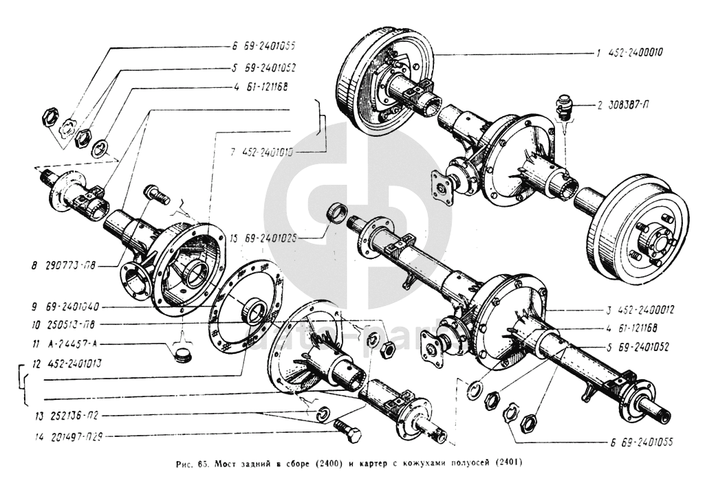 Мост задний в сборе, картер с кожухами полуосей УАЗ 3962