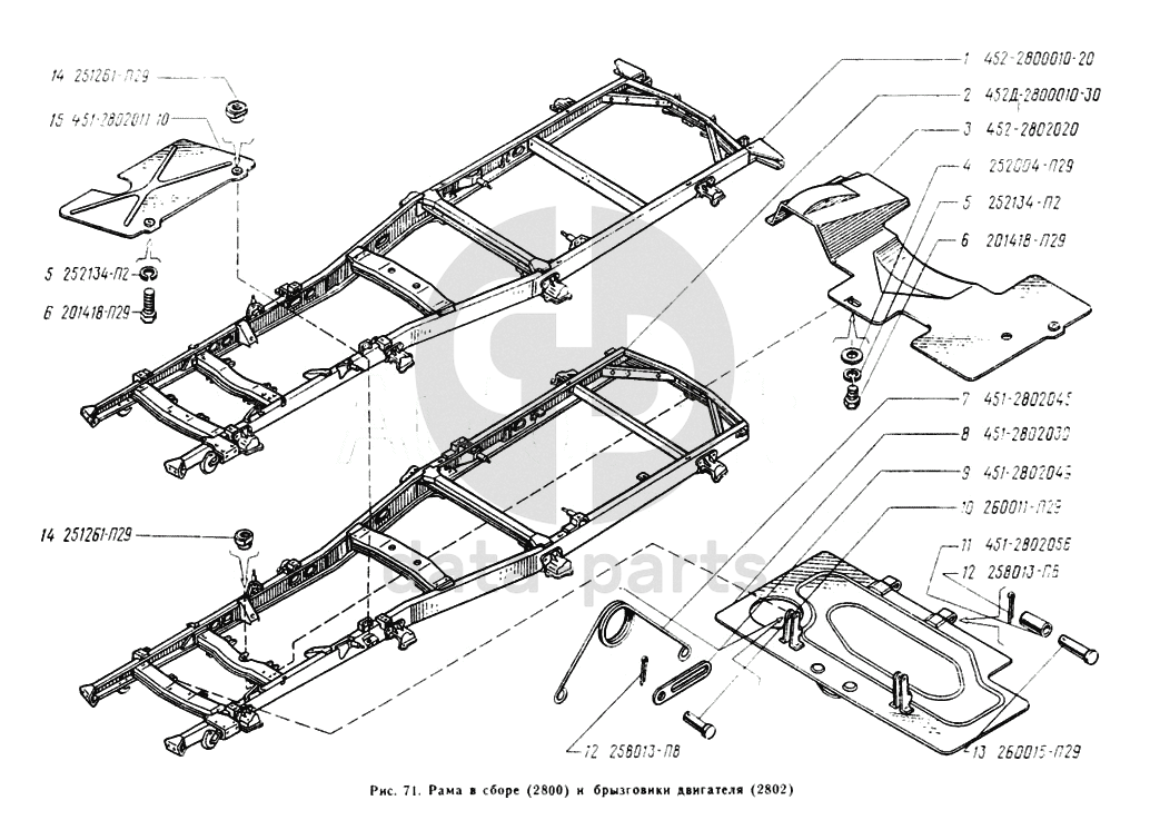 Рама в сборе, брызговики двигателя УАЗ 3962