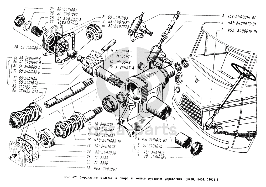 Управление рулевое без рулевого колеса, колонки и сошки в сборе