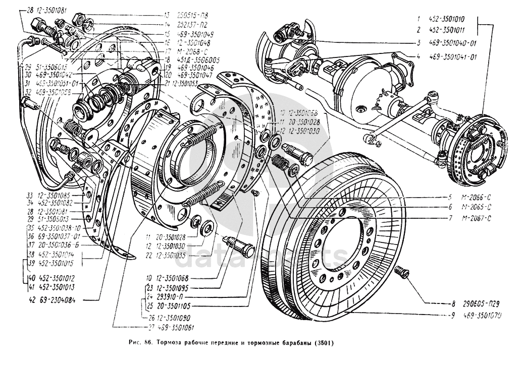 Тормоза рабочие передние и барабаны тормозные УАЗ 3962