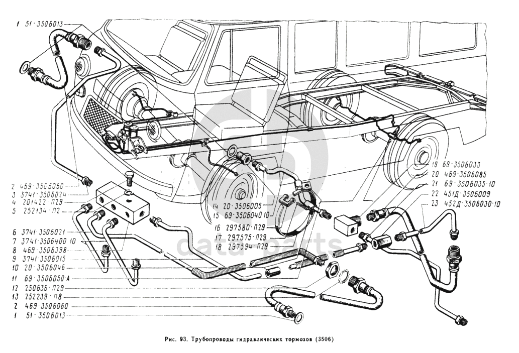 Трубопроводы гидравлических тормозов УАЗ 3962