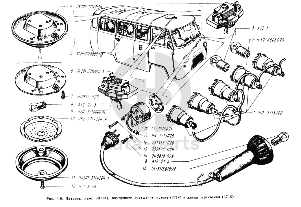 Патроны ламп, внутреннее освещение кузова, лампа переносная УАЗ 3962