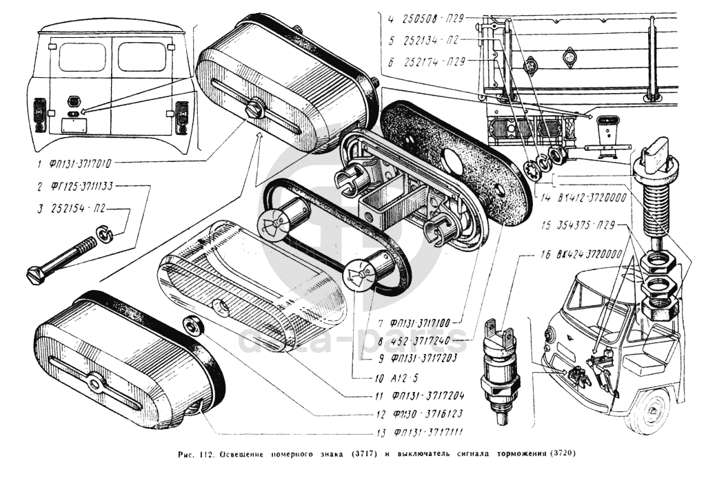 Освещение номерного знака, выключатель сигнала торможения УАЗ 3962