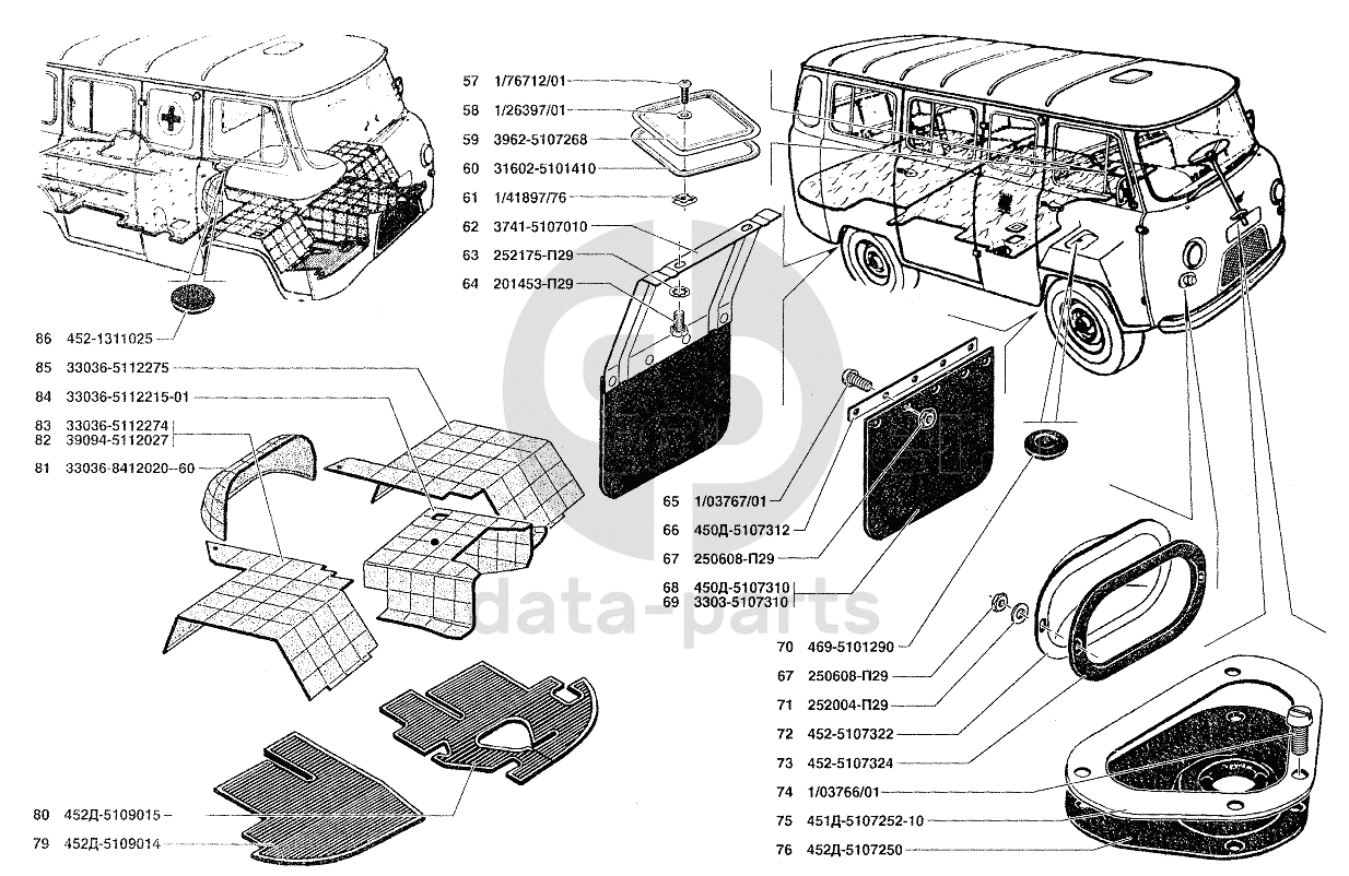 Кожухи пола, коврики пола, шумоизоляция пола УАЗ-37419