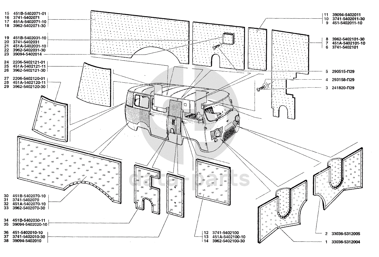 Термошумоизоляция передка, обивка боковины УАЗ-37419