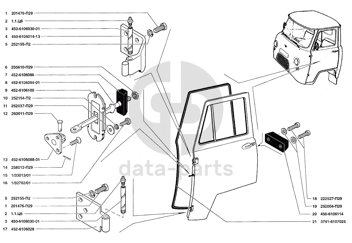 Навеска и уплотнитель передней двери УАЗ-37419