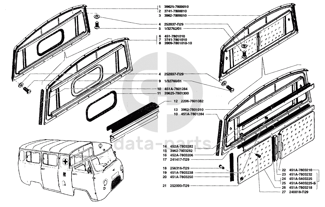 Перегородка кузова в сборе и окно перегородки (для автомобиля УАЗ-396294, УАЗ-396295) УАЗ-37419