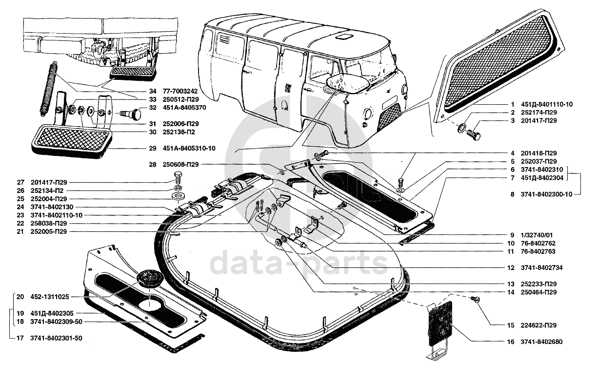 Облицовка радиатора, капот и подножка УАЗ-37419