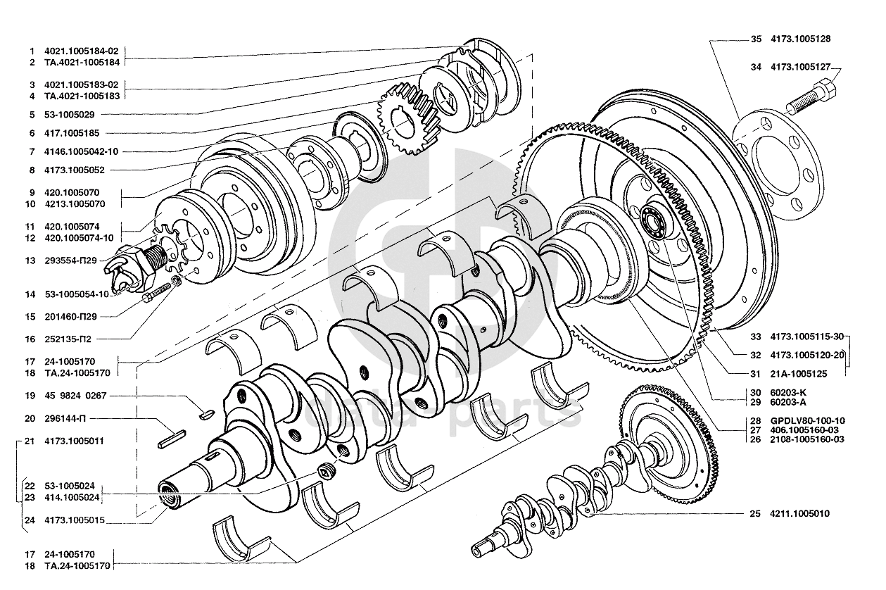 Вал коленчатый и маховик УАЗ-37419