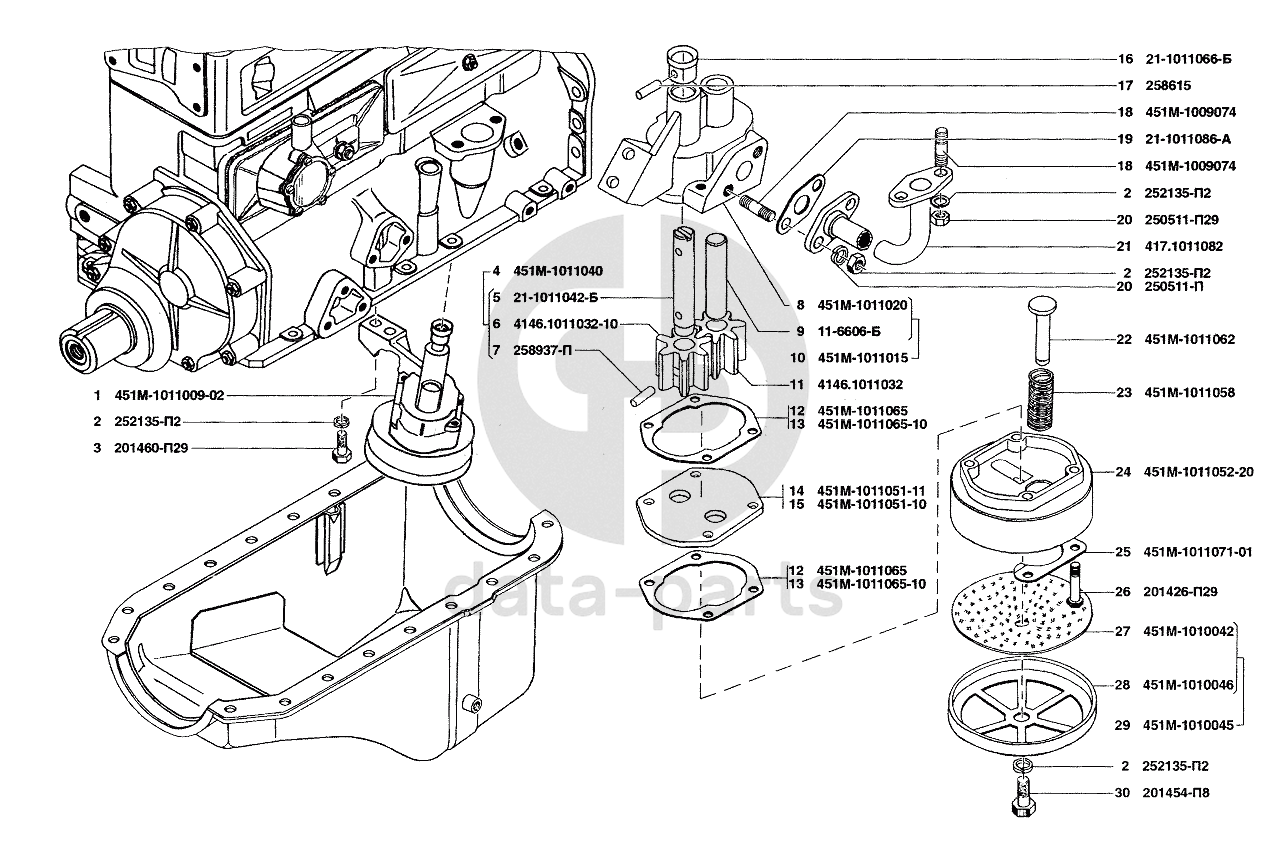 Маслоприемник и масляный насос УАЗ-37419