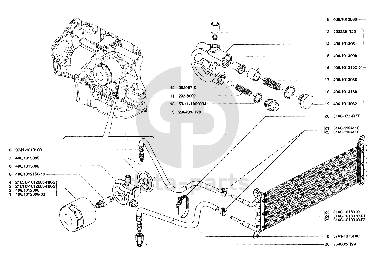 Фильтр очистки масла и радиатор масляный УАЗ-37419