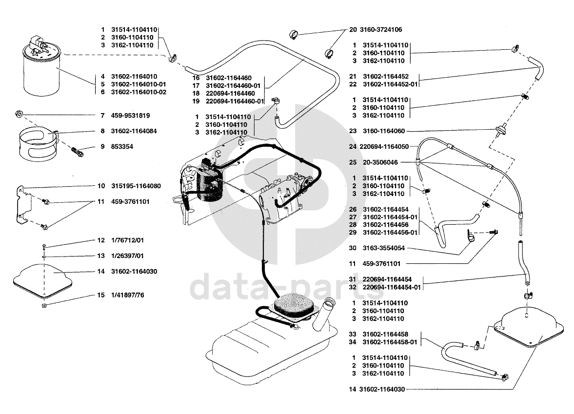 Улавливатель и магистрали паров топлива УАЗ-37419