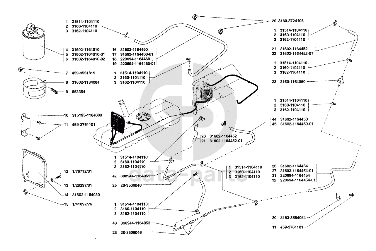 Улавливатель и магистрали паров топлива УАЗ-37419