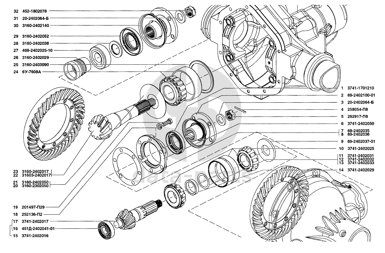 Шестерня ведущая главной передачи заднего моста с подшипником
