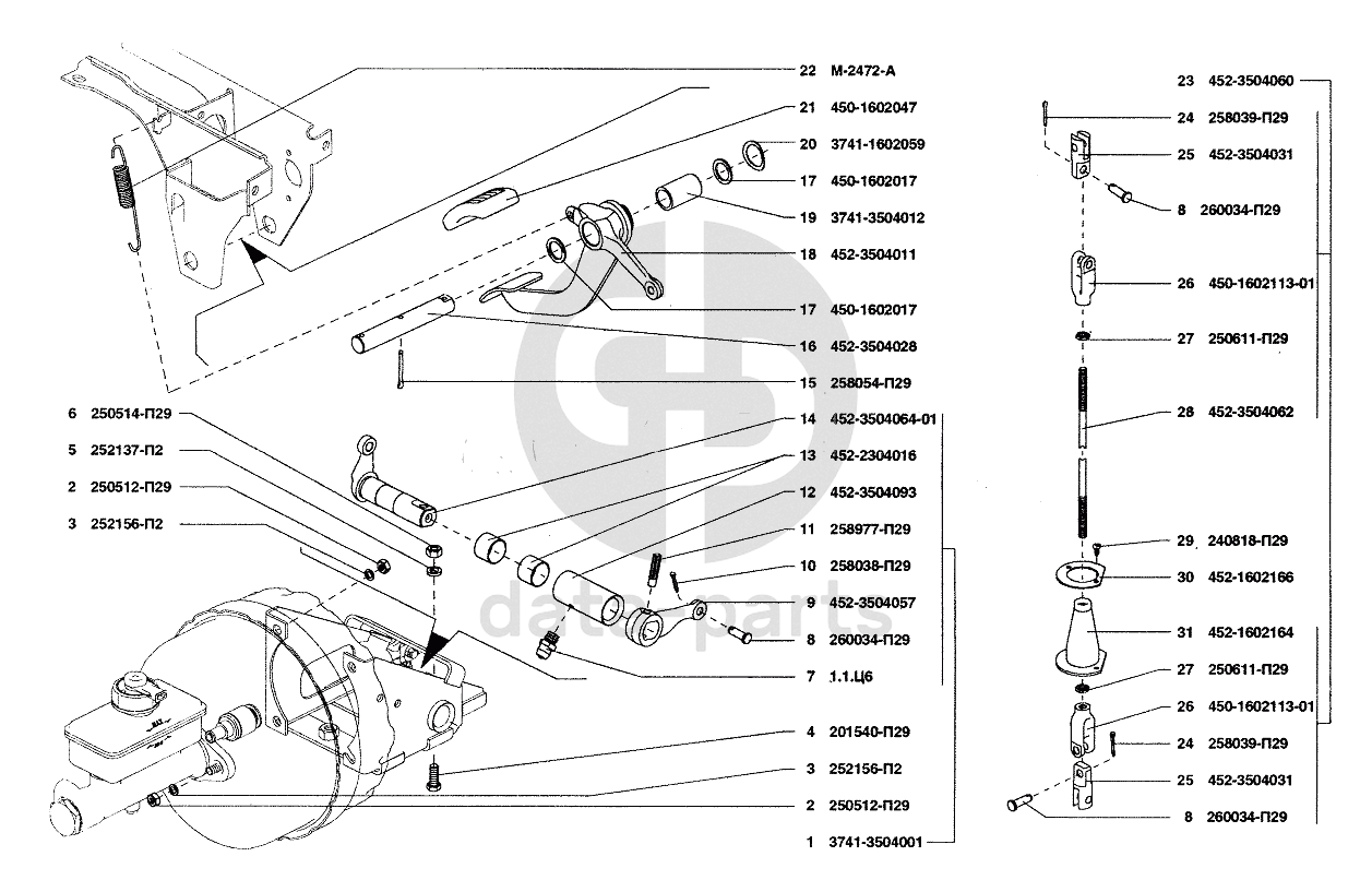 Педаль и привод механизма управлени тормозами УАЗ-37419