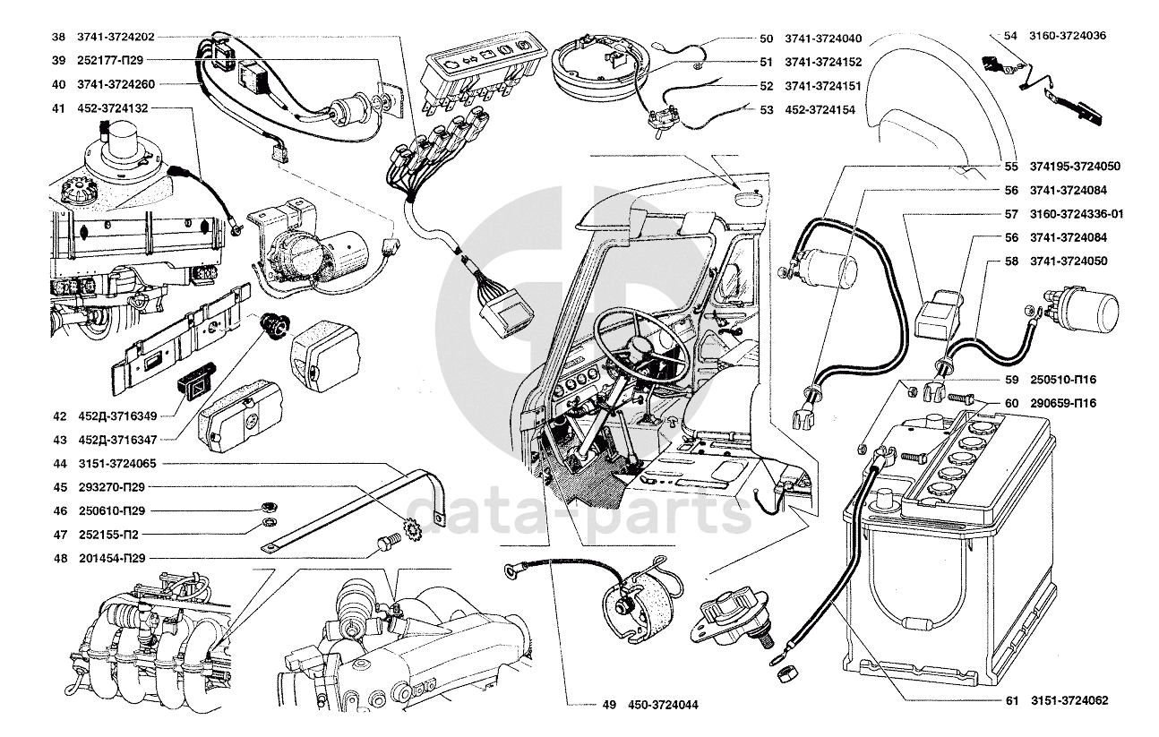 Электропровода (для автомобилей УАЗ-330394, УАЗ-330364, УАЗ-390944, УАЗ-330395, УАЗ-330365, УАЗ-390945) УАЗ-37419