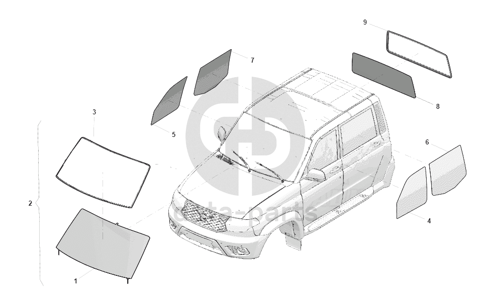 Стекло ветрового окна в сборе