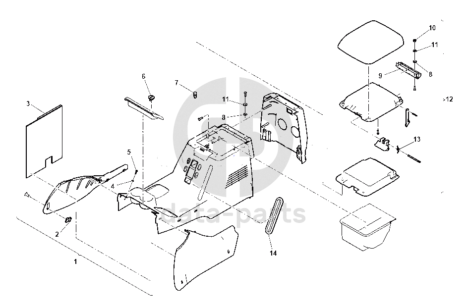 Крышка корпуса облицовки туннеля пола уаз-патриот с отсеком хранения подлокотник
